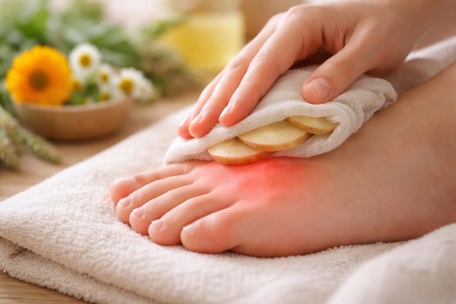 - Massage : Masser le pied avec des huiles essentielles telles que la gaulthérie ou la lavande pour bénéficier de leurs propriétés anti-inflammatoires.